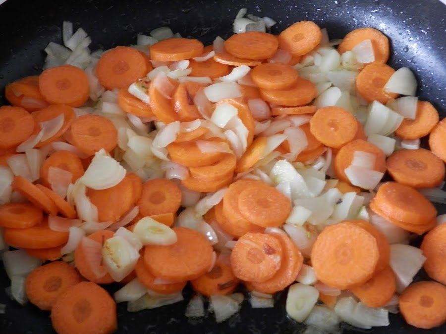 Una vez sellados, en el mismo aceite, fríe las zanahorias, el ajo y la cebolla.
