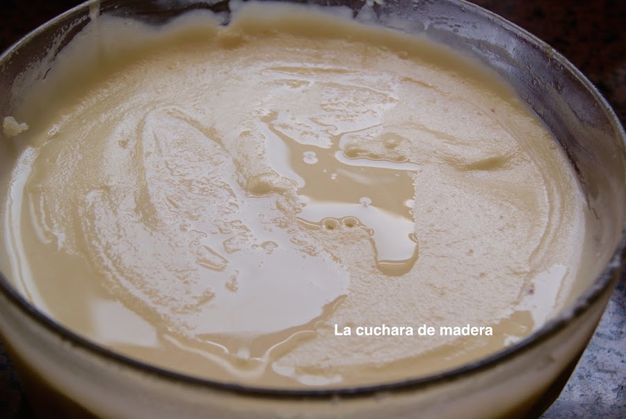 Trituramos bien, rectificamos de sal si hace falta y reservamos. En casa tomamos al día siguiente esta receta por eso está fría la papilla o puré de papas de la nevera y se ve sin el brillo.