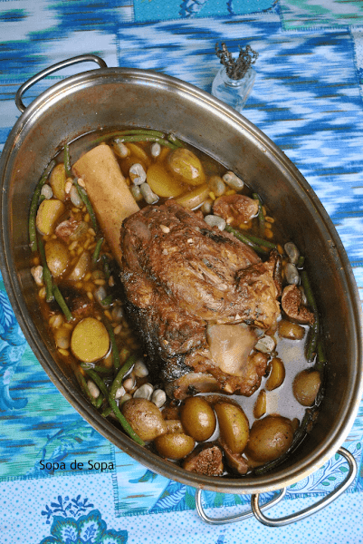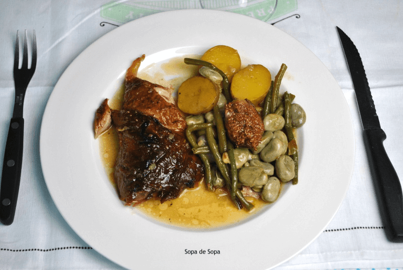 El tiempo de cocción es largo, pero merece la pena. Queda una carne muy tierna y jugosa. Además el acompañamiento ya lo lleva incluido. Será sacar del horno y servir!!