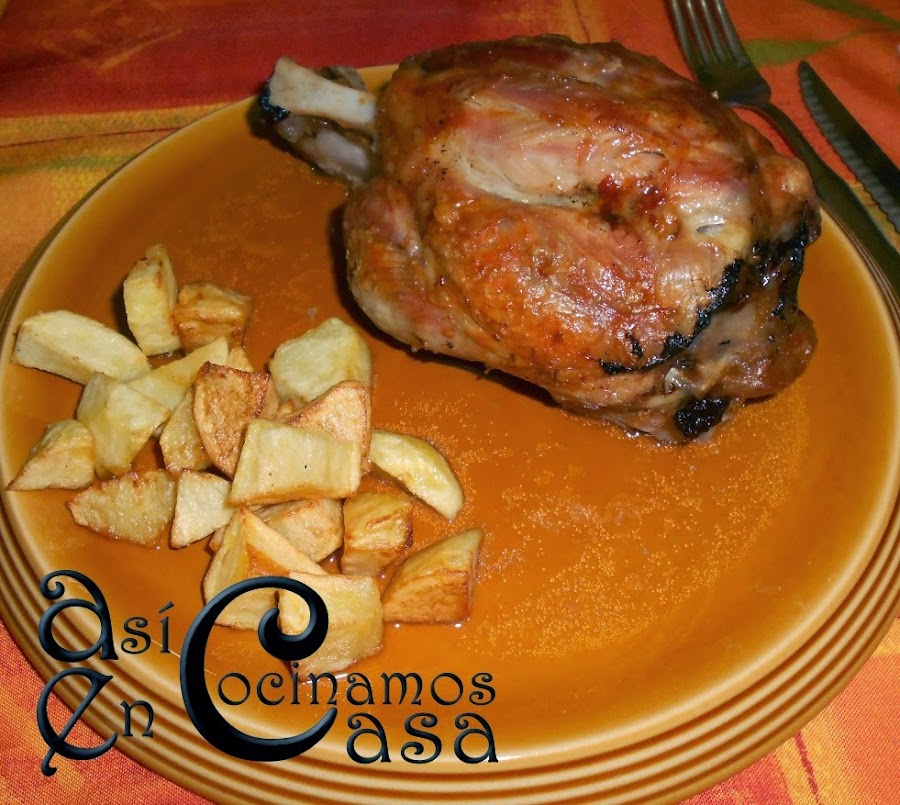 Hornearemos a 180º durante 2 horas aproximadamente. Cada 15 minutos más o menos abriremos un poco el horno y con una cuchara regaremos cada pieza por encima con un poco del mismo caldito que va quedando. Si vemos que se consume demasiado podemos incorporar más agua. A medio horneado daremos la vuelta a las piezas para que se hagan bien por todos los lados.
