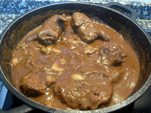 Así que he visto por Internet muchas recetas de preparación, esta es la que más me ha llamado la atención. ¿Será por el chocolate o el vino tinto y el brandy? La salsa es una delicia, daban ganas de comérsela a cucharadas.