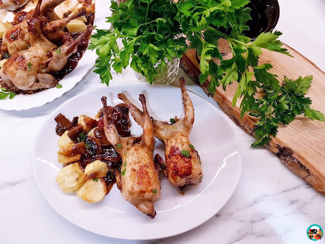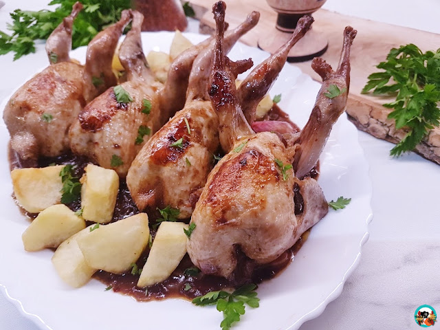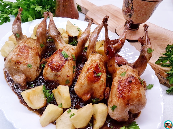 Las codornices al oporto, también las puedes acompañar con unas papas a la griega o unas papas a lo pobre.