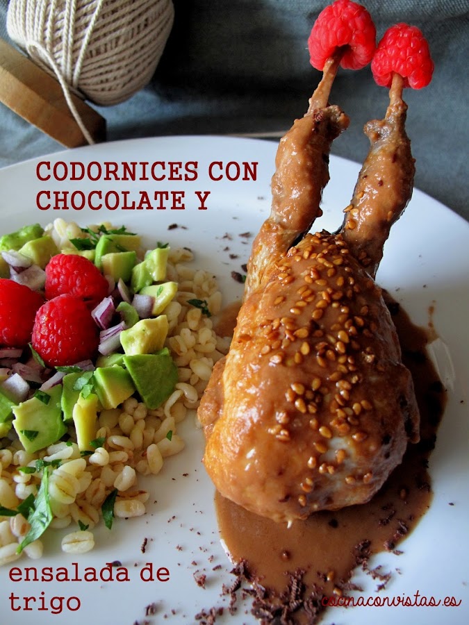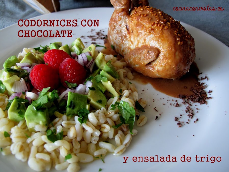 CODORNICES CON CHOCOLATE Y ENSALADA DE TRIGO