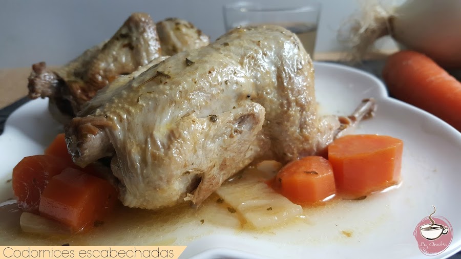 Esta vez me he animado con las codornices que me encanta comerlas estofadas, pero nunca las había preparado así. ¡¡Riquísimas!! Pero bueno, ya os digo yo que no soy nada imparcial en este tema porque, como os decía al principio, a mi todos los escabeches me gustan.... mucho.
