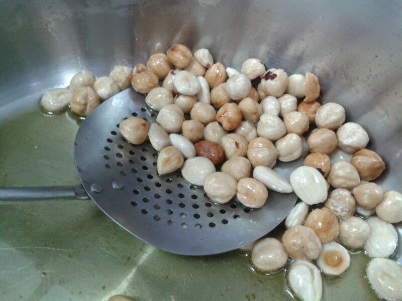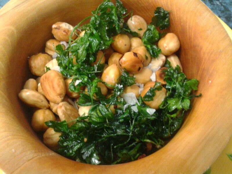 Hacemos un "majaíllo" con los frutos secos, los ajos, el perejil y un poco de sal.