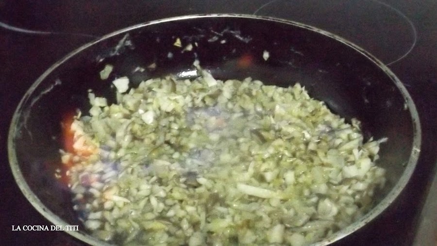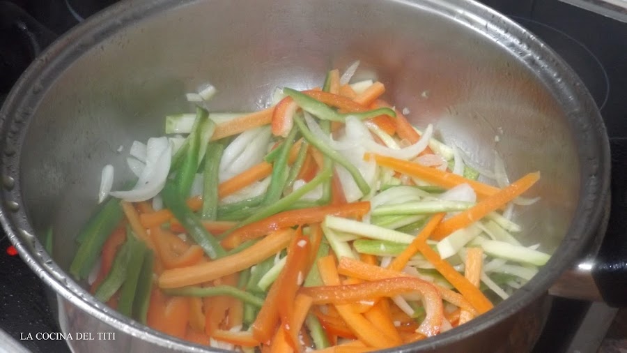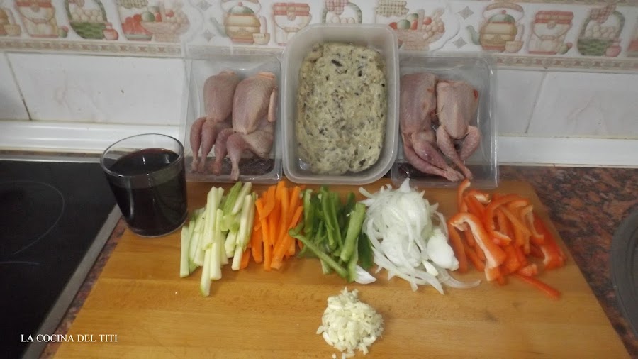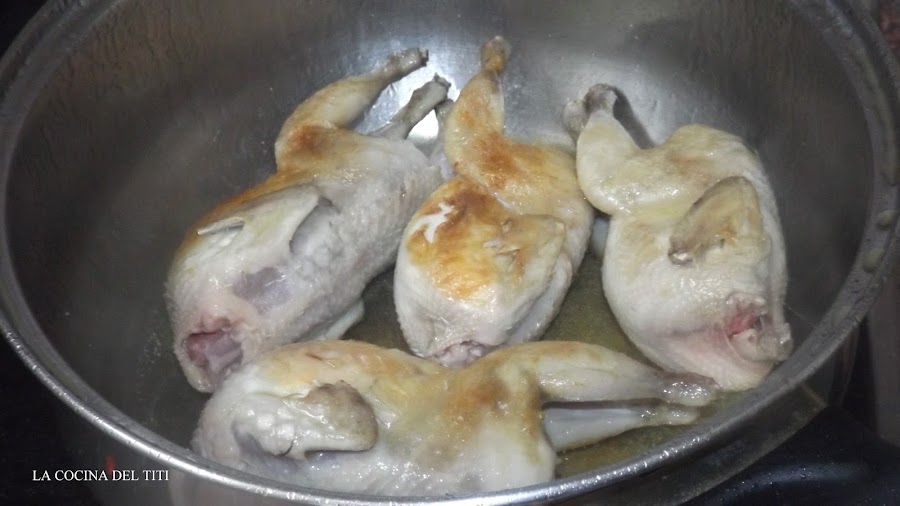 4º En donde mismo hemos marcado las codornices pondremos a pochar toda la verdura cortada en julianas