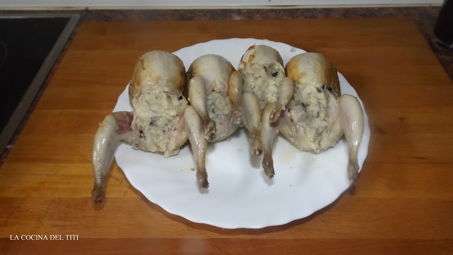5º Mientras rehogamos las verduras rellenamos las codornices y cerramos con palillos de madera