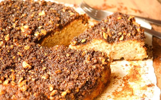La mantequilla dorada en esta receta se usa tanto en la masa como en el arenado de encima. Cada bocado tiene esa textura suave de la torta y un poco acaramelada y el crujiente del arenado con un poco de nuez. mmm… delicioso!