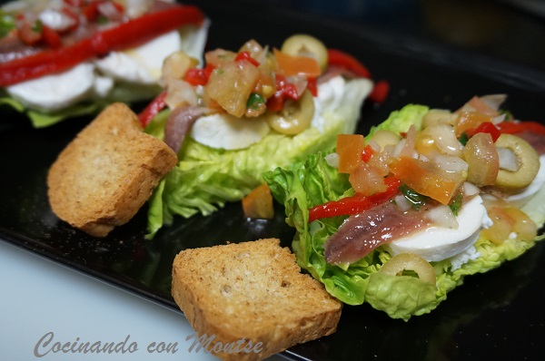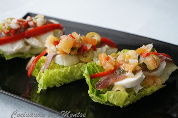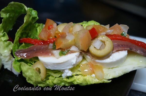 Cogollos con anchoas y queso Hoy os propongo una ensalada, cogollos con anchoas y queso, una opción sana y saludable. Unos ricos cogollos de lechuga con anchoas y queso y terminado con una vinagreta de cebolla y tomate.
