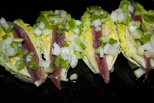 Una de las recetas más usadas en casa de mis padres en verano (si se puede llamar verano a lo que hace en Bilbao), es la que os traigo hoy: Cogollos de Tudela con anchoas del Cantábrico.