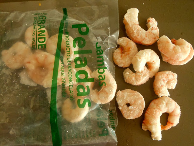 Comenzaremos descongelando los palitos de surimi y las gambas siguiendo las instrucciones del fabricante.
