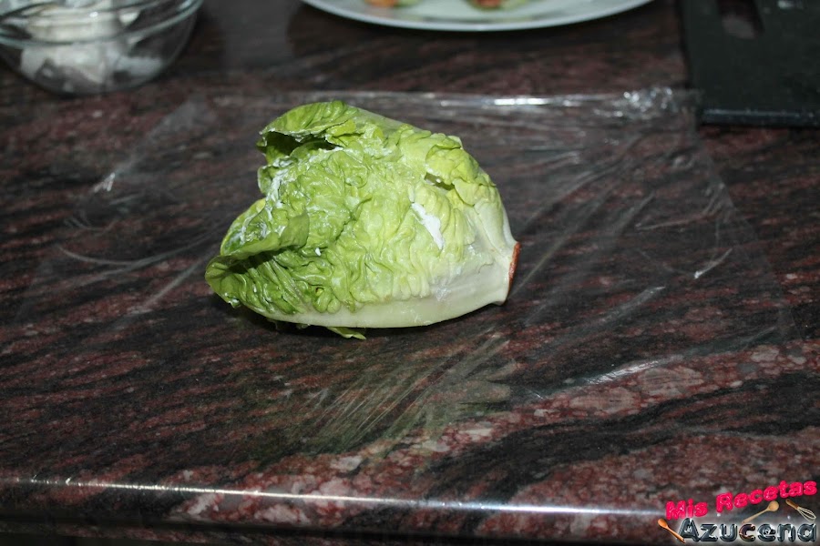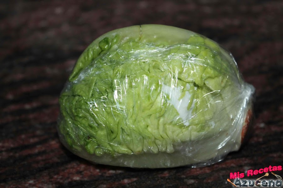 Estiramos un poco de film transparente y pondremos el collogollo en el centro, enrollamos y lo metemos en la nevera, repetiremos estos pasos con los cogollos restantes.