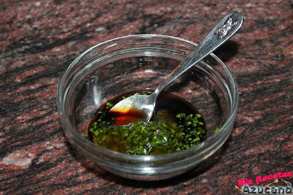 Mientras prepararemos la vinagreta, cogemos el cebollino y lo picaremos en trozos pequeños, reservamos.
