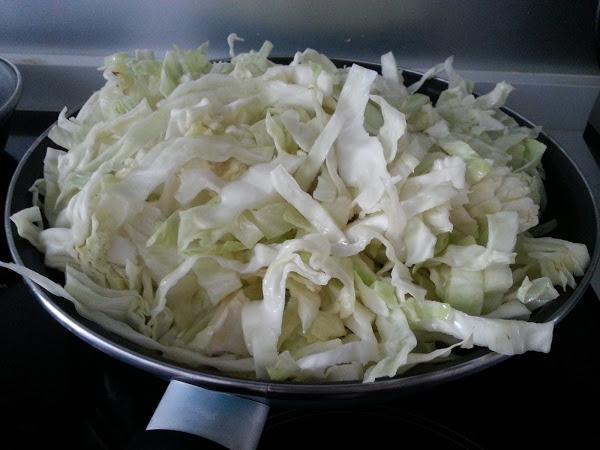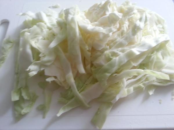 2. - Mientras se hacen los ajos, cortamos la col en juliana (en tiras).