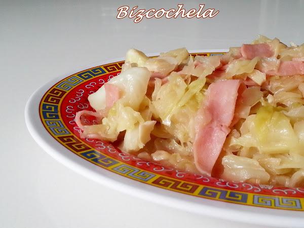4. - Las lonchas de jamón las cortamos en tiras, mientras se está haciendo la col.