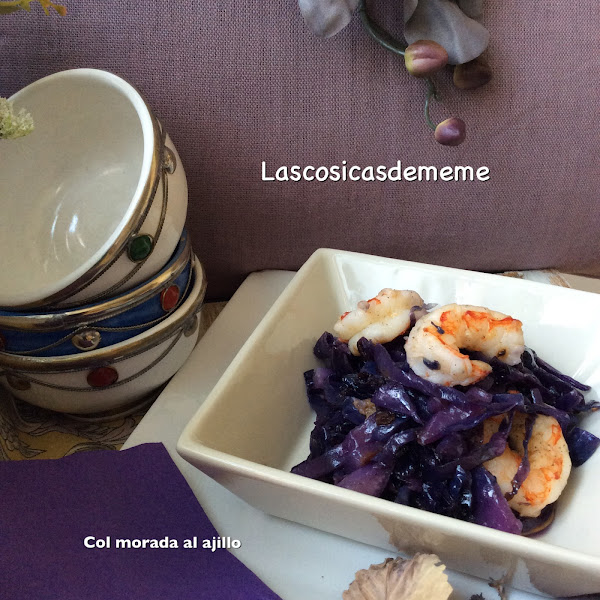 COL MORADA, más suave y dulzona que la blanca, en esta ocasión rehogada con gambas al ajillo, me encanta esta combinación, probar y veréis que tengo razón...