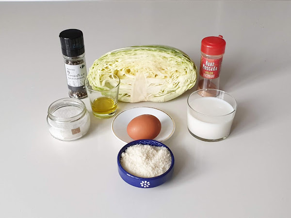 3. - Batimos el huevo con la leche y le añadimos sal, la nuez moscada y pimienta, y echamos sobre la col.