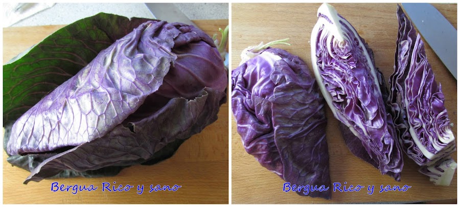 1. Retiramos las hojas más grandes y cortamos la col en cuartos.