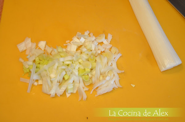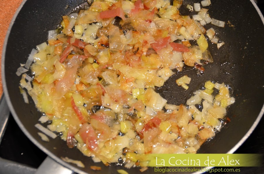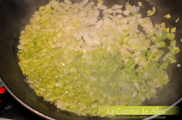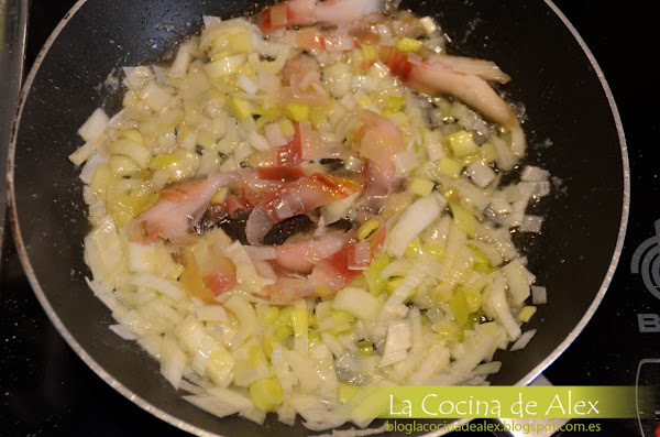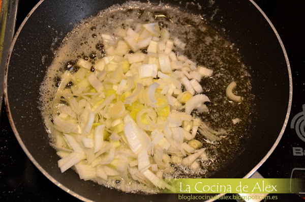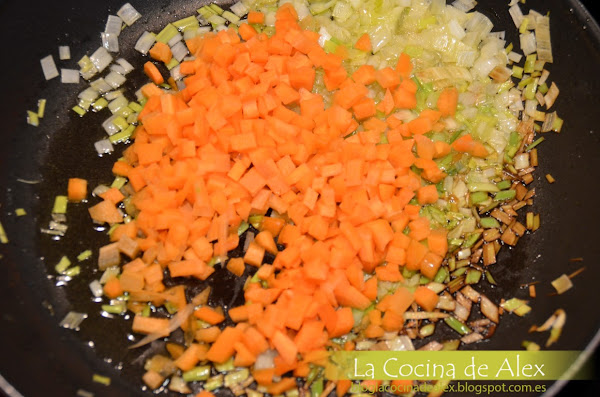 En una sartén con un poco de aceite, ponemos el puerro y la zanahoria a pochar.