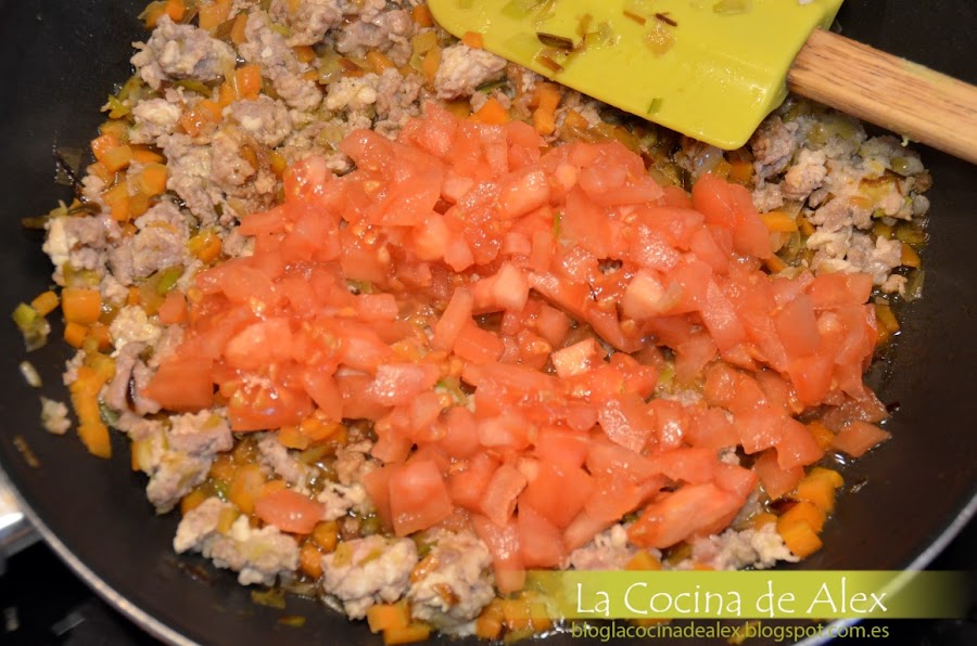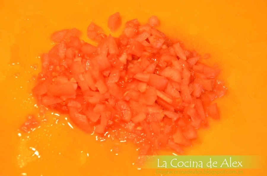 Por último incorporamos el tomate picado y seguimos cocinando a fuego medio unos minutos más para que se mezclen todos los sabores.