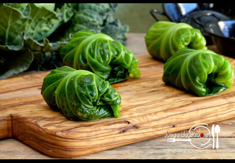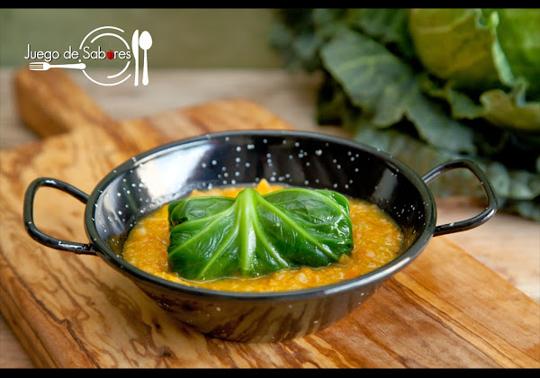 La col es una de las verduras más humildes. Suele ser la gran olvidada de los recetarios de cocina. Siempre acostumbra a tener un papel de comparsa, aunque su presencia se deja notar porque cuando se hierve emite un olor tan particular y tan fuerte que inunda todos los rincones de la casa. La col, el repollo, la berza son "carne" de olla, de potaje, de cocido. En Alemania, es la verdura nacional y con ella, una vez fermentada, se hace el famoso chucrut con el que se acompañan muchos platos, especialmente de cerdo. Nosotras hemos hecho algunas recetas con col como el "Trinxat de la Cerdanya" o la "Lombarda con manzana,pasas y piñones", pero hoy os proponemos hacer unos pequeños paquetitos escaldando las hojas de col para ablandarlas y rellenarlas después. El relleno puede ser muy variado. Hemos optado por el arroz basmati, los boletus edulis (ceps) y el jamón serrano. Luego hemos acompañado el plato con una salsa de zanahoria, cebolla y vino blanco. Un regalo para el paladar envuelto en hojas de col.