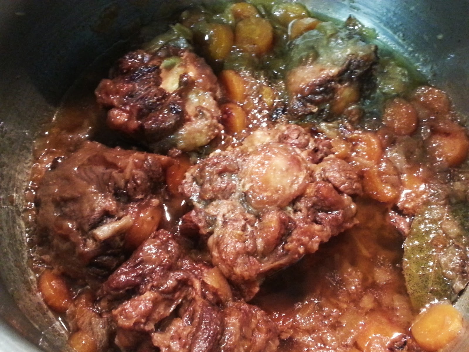 Tapamos y dejamos a fuego medio pitando durante una hora. Abrimos la olla y damos la vuelta a los trozos de cola.