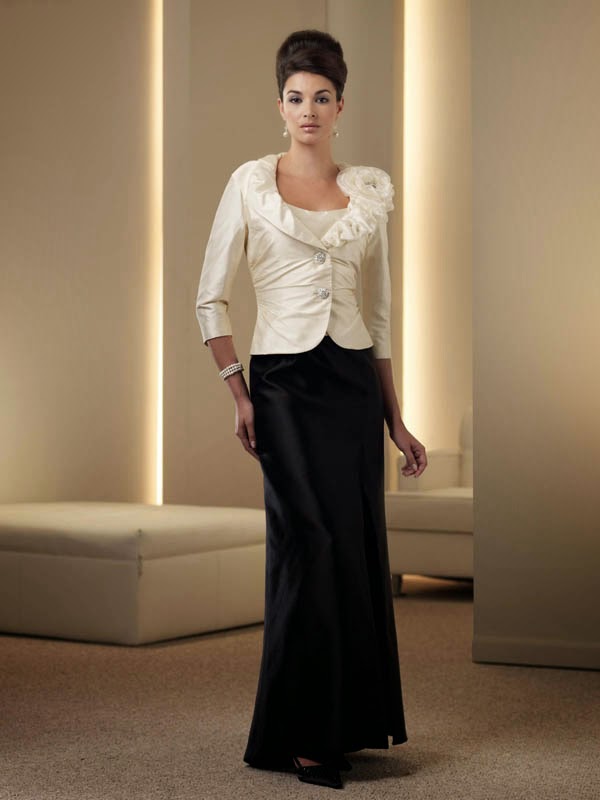 En la sección de vestidos formal o madrina podéis encontrar este precioso vestido en tres piezas. En tafetán y de corte recto. Lleva un top debajo y una chaqueta de manga tres cuartos. Un clásico.