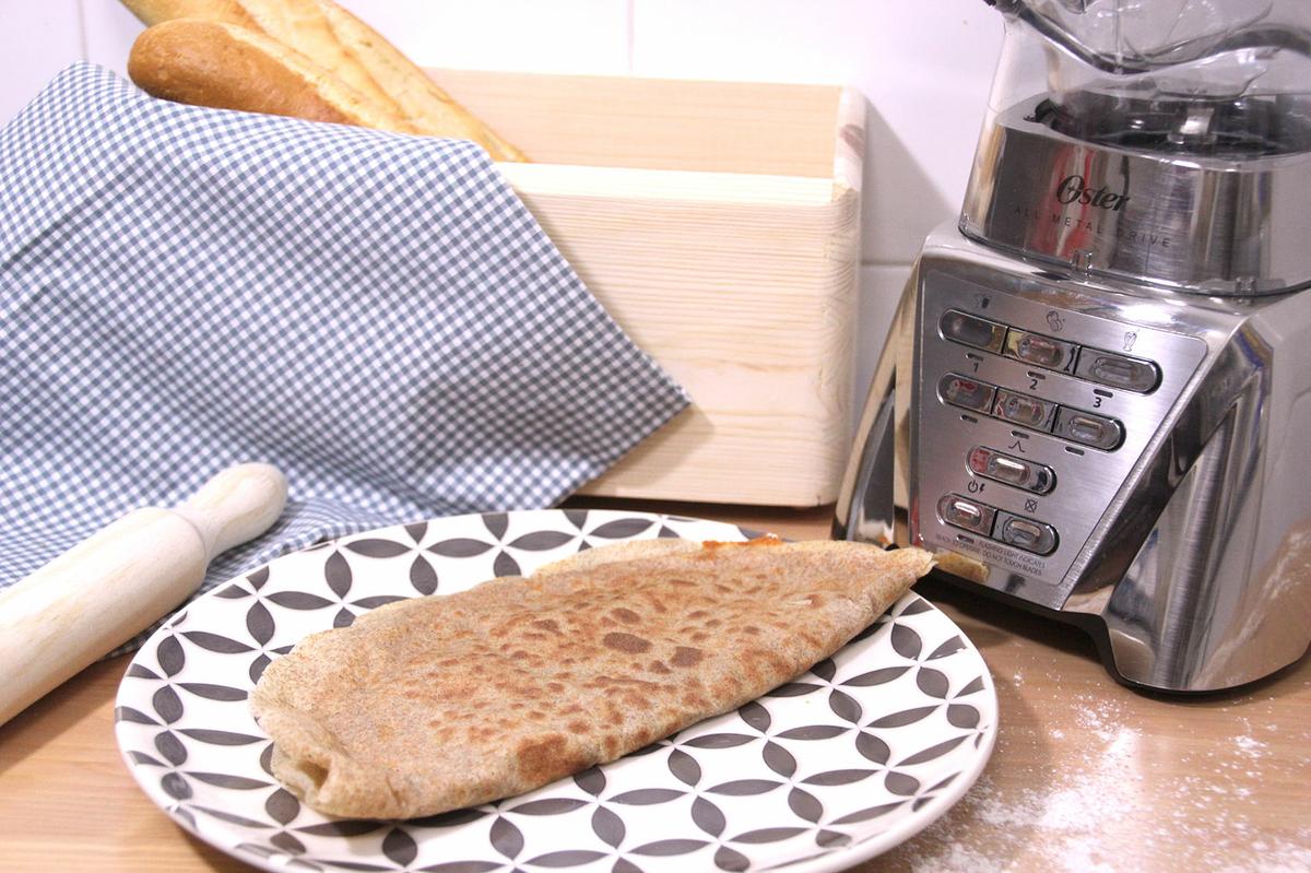 Una vez que esté batido todo, ponemos una sartén a fuego medio y añadimos una gota de aceite que repartimos con un papel absorvente. Dejar calentar bien la sartén, y añadir masa con una mano, mientras movemos en círculos la sartén con la otra. De esta manera, la masa quedará repartida equilibradamente por la base de toda la sartén.