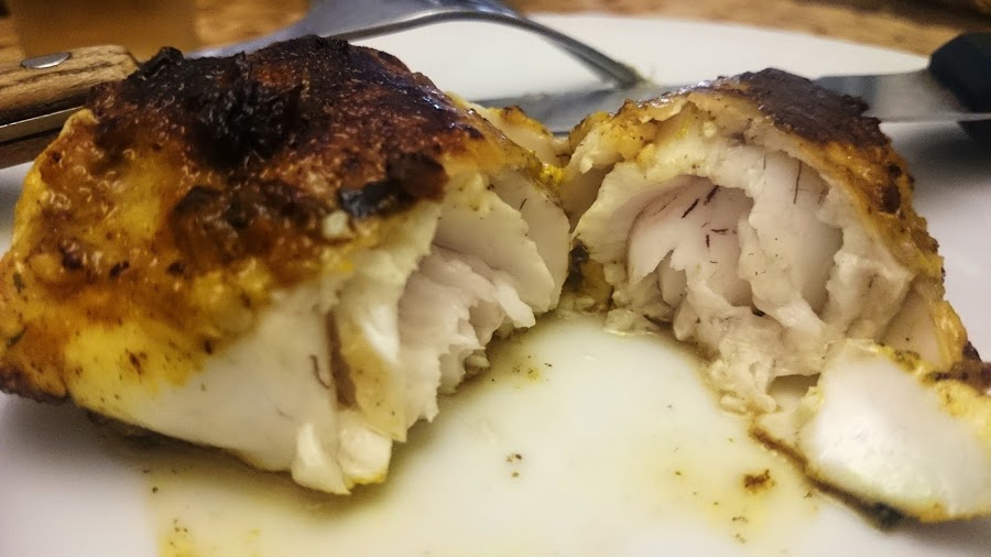 Colocamos las colas de rape en un plato plano. Removemos la pasta de especias y la echamos por encima. Embadurnamos el pescado con las manos para que no quede ni un rincón sin pasta. Tapamos el plato con film transparente y dejamos en el frigorífico una hora como máximo. Una vez transcurrido ese tiempo, sacamos el pescado del frigorífico y esperamos a que se temple a temperatura ambiente.