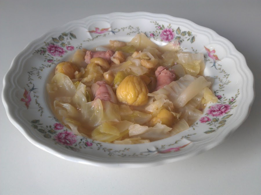 Hoy vamos con un plato de temporada.......las castañas. Este plato lo prepara mi madre desde que tengo uso de razón, y la verdad es que a todos nos encanta. La castaña en platos salados le da un toque especial , a mi personalmente me chifla. Espero que a vosotros también.