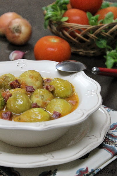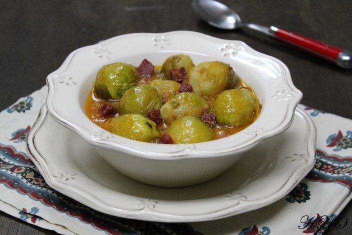 En esta receta las prepararemos de una forma sencilla, guisadas con tomate natural y jamón curado. Es imprescindible tener un buen pan al lado para mojar... ¡qué rico! Una última recomendación, procurad comprar las coles frescas y no congeladas, aunque son una hortaliza de temporada se pueden cultivar en invernadero todo el año y estarán más ricas.
