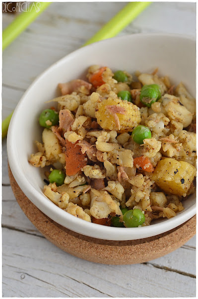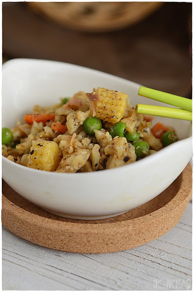 De todos modos, os dejo aquí mi receta de arroz tres delicias, donde podéis comprobar que la realizó igual que está coliflor. Os aseguro que da el pego bastante y loejor, no queda la casa oliendo con ese olor tan caracteristico