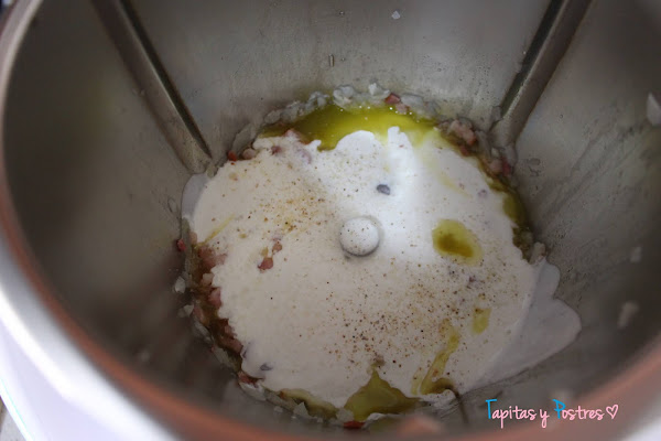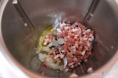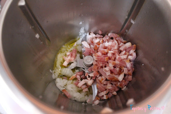 Agregamos el aceite, los daditos de bacon...