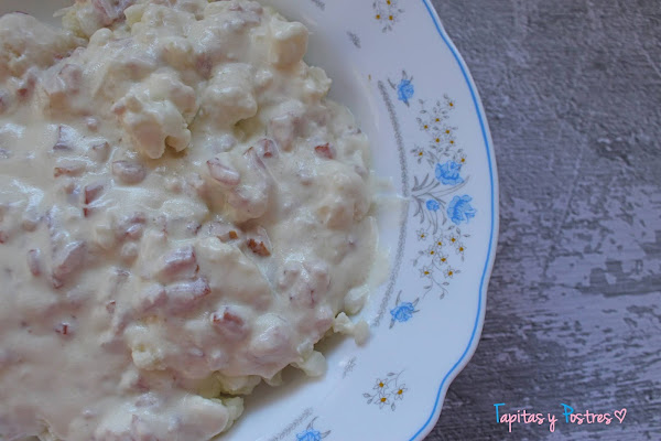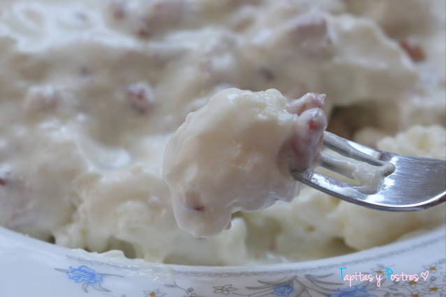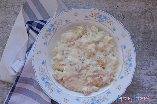 He preparado una deliciosa versión de carbonara sin pasta, con coliflor y he de decir que me ha quedado de lujo. Así que espero que os guste tanto como a nosotros.