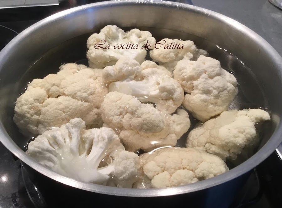 Troceamos la coliflor y la cocemos con un poco de sal al dente.
