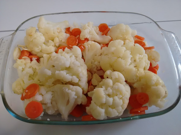 Ponemos agua a hervir en una olla especial para vapor, añadimos la col y las zanahorias, ponemos un poco de sal, tapamos la olla, y las dejamos con el agua hirviendo unos 15 a 20 minutos hasta que pinchemos con un tenedor y veamos que esta tierna la coliflor.