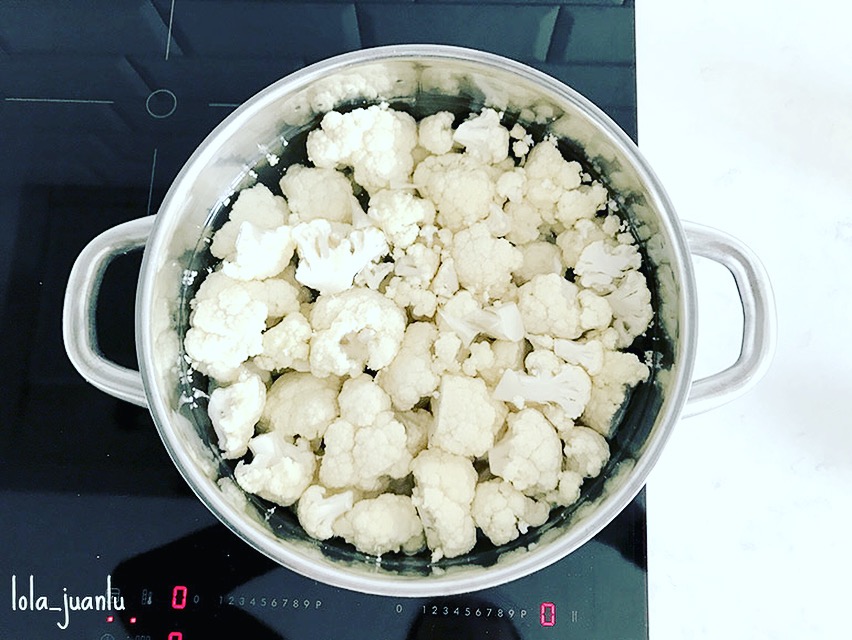 Tengo que decir que no solemos comer coliflor, pero mi madre la hacía mucho, así que me dio tres recetas y hoy vamos a preparar la primera, la que recuerdo que más me gustaba, coliflor aliñá.