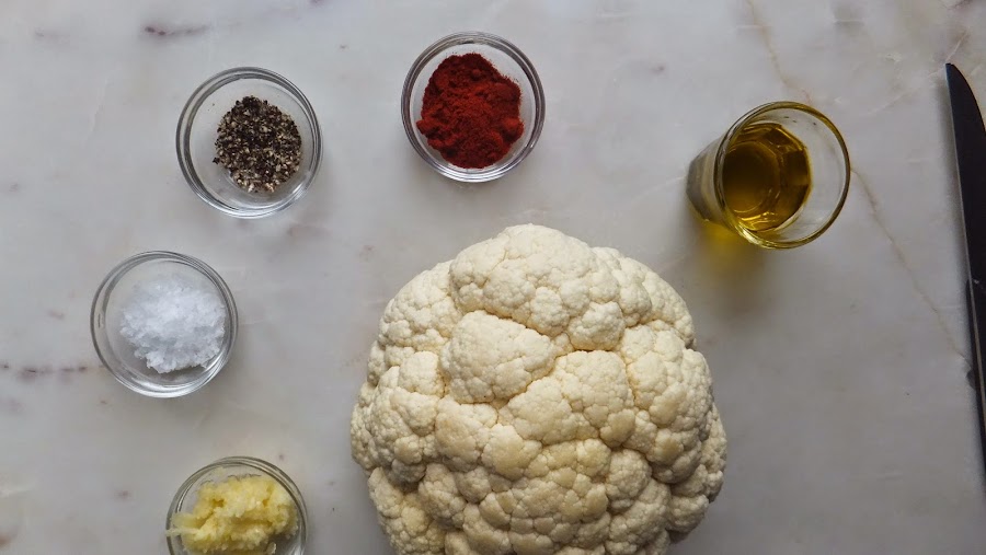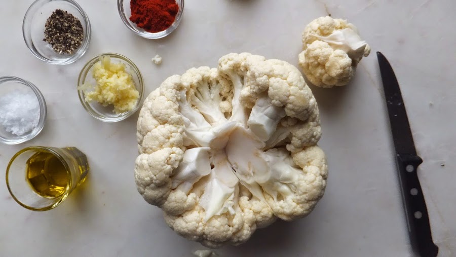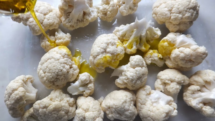 En busca de una manera sana y sin embargo apetecible de comer está verdura del demonio descubrí que había un club secreto de personas que asan la coliflor en lugar de hervirla consiguiendo así un tono tostado maravilloso y un agaradable sabor acaramelado muy superior al hedor de la coliflor hervida. Si a esta ecuación de horno y coliflor le añadimos además otros elementos mágicos como las especias, la salsa de soja o el ajo conseguimos sin apenas ningún esfuerzo, ni olor indeseado, obrar un milagro y hacer una coliflor apta para todos los gustos, incluso para aquellos que, como yo, intentan mantenerse tan alejados de ella como les sea posible.