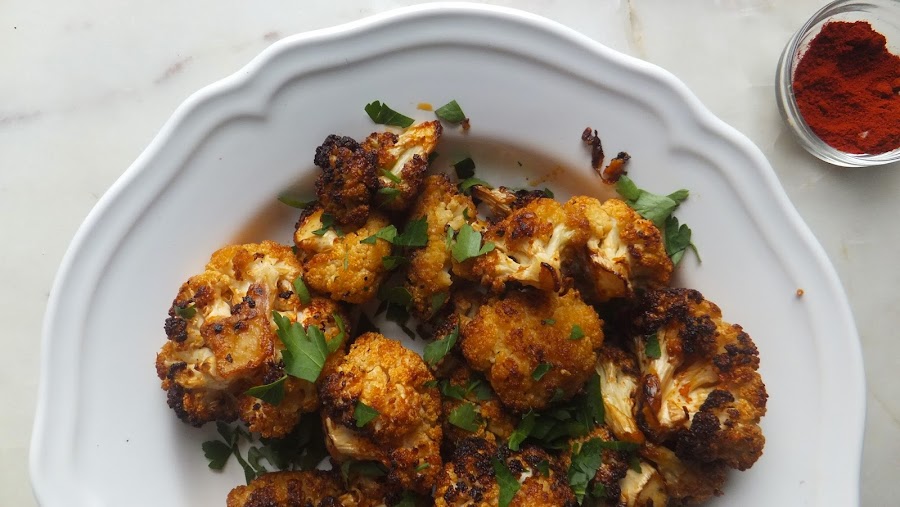 3. Directo al paladar, colifror asada con pimentón y frutos secos. Receta de navidad.
