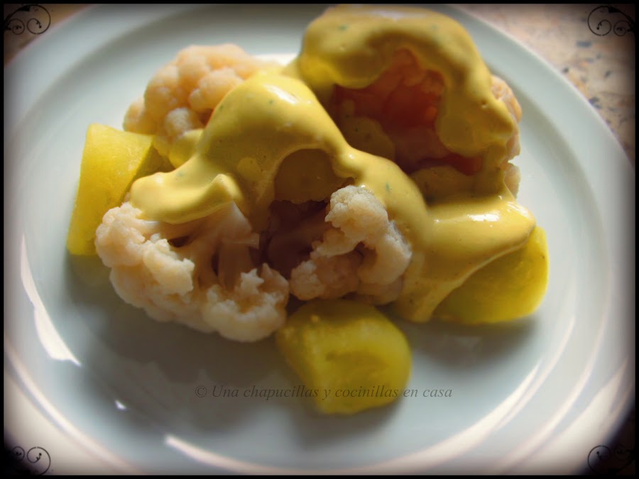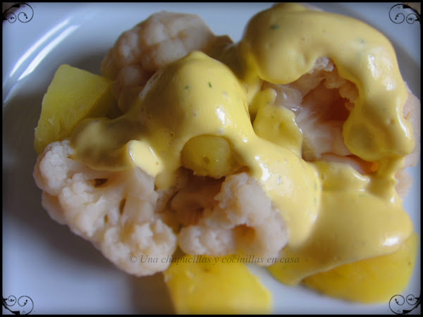 Para las personas que les guste la coliflor, os traigo una receta para este verano, coliflor cocida con patata y acompañada de salsa alioli, se mete en la nevera y se come fresquita, en mi casa se llama así a esta salsa, aunque he de recalcar que no es la autentica alioli, que se prepara con ajo y aceite, sino una mahonesa con ajo ;-)