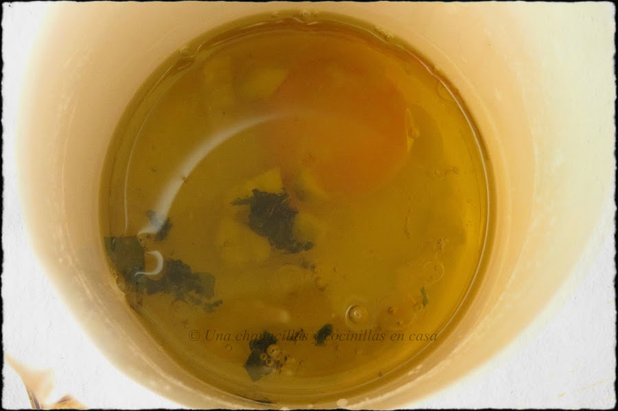 Para hacer una mahonesa casera perfecta, es muy fácil; coger un vaso batidor alto, cascar y echar un huevo entero, ponerle una pizca de sal, cubrir con aceite de oliva suave, yo lo hago un poco a ojo y cubro unos tres o cuatro dedos por encima del huevo (para los que os gustan mas las medidas, unos 200-250 ml. de aceite de oliva) un chorrito de vinagre o unas gotas de limón.