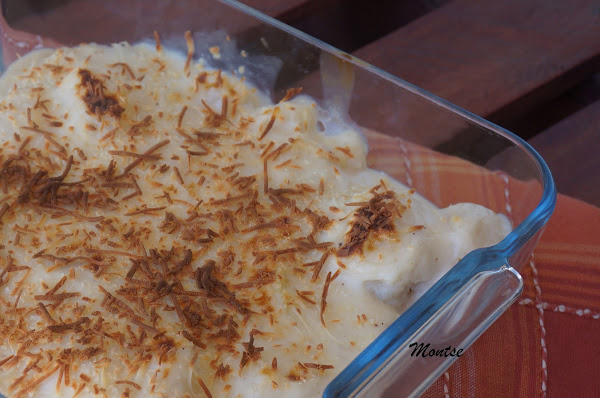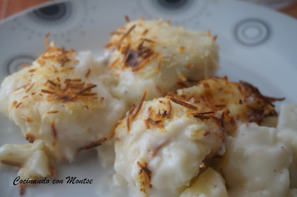 La coliflor es una verdura que me gusta mucho, junto con el brocoli, muchas veces las cocino juntas, aunque son verduras que no gustan mucho, en mi casa cuando ya notan el olor ya ponen mala cara, no les gusta mucho, pero a mi sí, sobre todo como la he preparado hoy, con bechamel al horno y con una patata cocida.