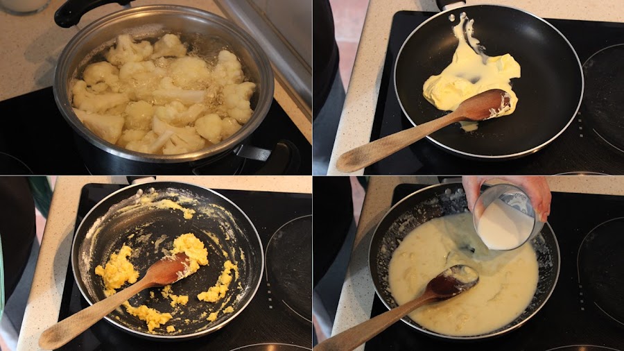 Cocemos la coliflor en gajos, con agua y sal hasta que esté "al dente".