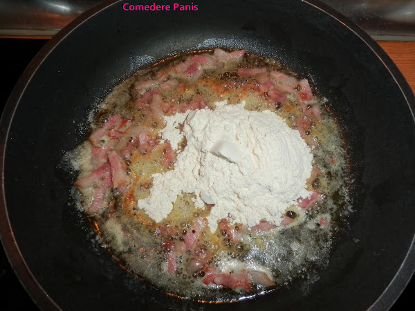 Añadir la harina, un poco de sal y pimienta y rehogarla un rato para que la harina se cocine.