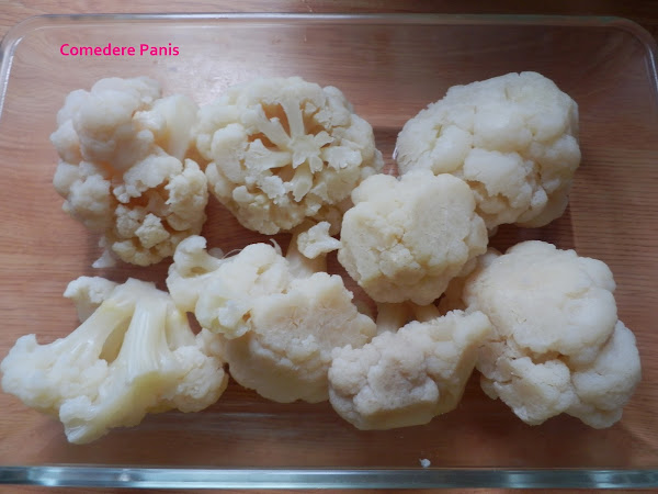Cocinar la coliflor con agua y un poco de sal, una vez cocinada escurrir y colocar la coliflor sobre una bandeja apta para el horno.