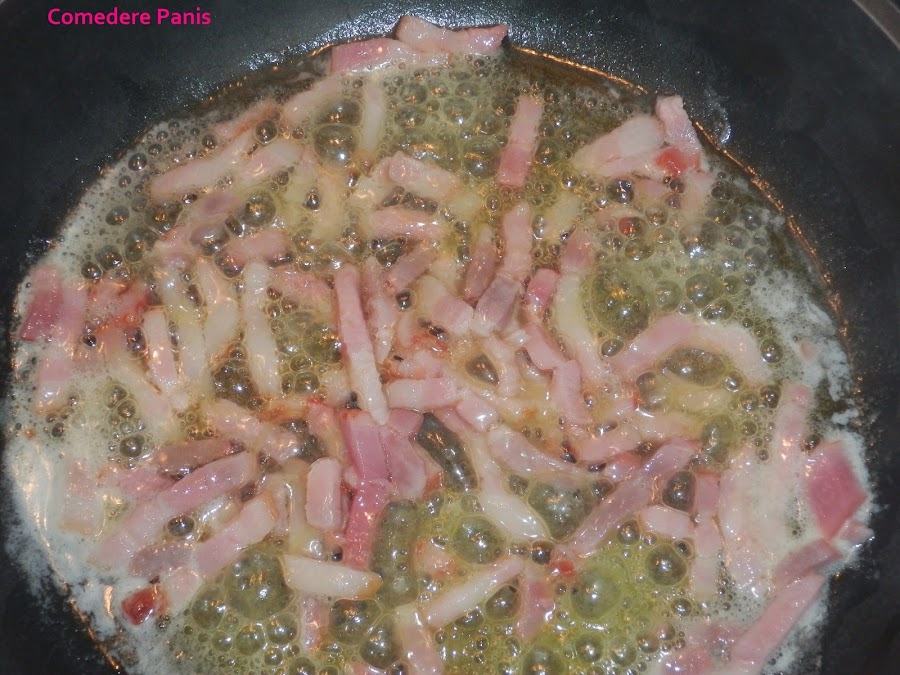 En una sartén colocar la mantequilla y llevarla al fuego cuando esta se derrita añadirle el bacon y dorar un poco.
