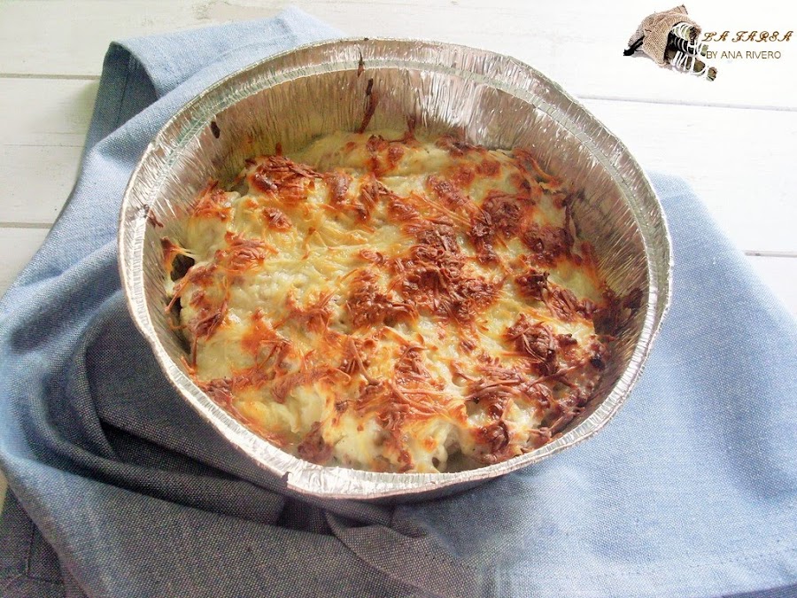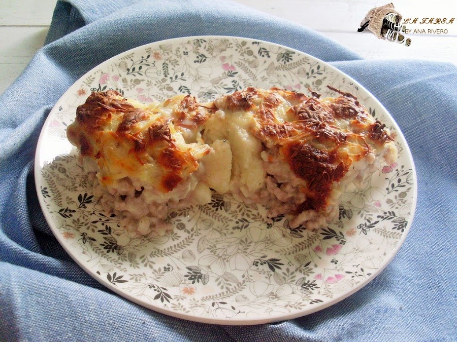 Verter por encima la carne con la bechamel