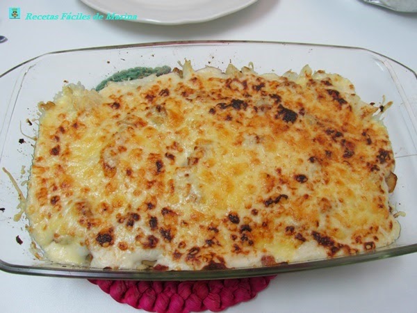 4. Cuando la bechamel tenga la textura deseada, se vierte sobre la coliflor hervida que habremos puesto ya en una fuente de horno. Se cubre con queso rallado y se gratina al horno durante cinco minutos. Sacar y servir.