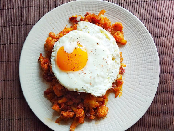 Servimos con el huevo encima de la coliflor. Yo le puse un poco de Sumac o zumaque, puedes echarle pimienta por ejemplo, y a disfrutar!!!