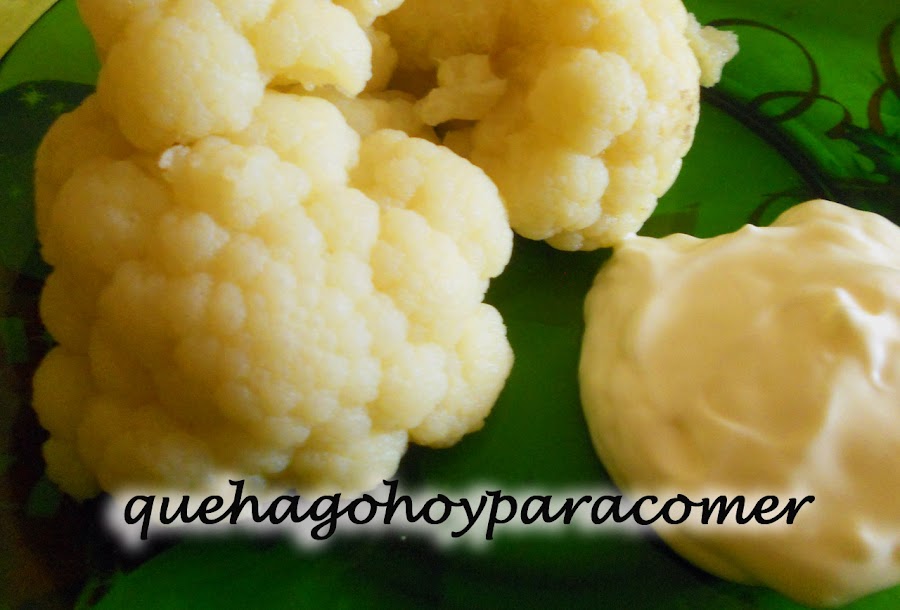 Cuando hayamos rescatado nuestra coliflor de la olla rápida, la sacamos con cuidado de no romperla, separamos los cogollos y repartimos en los platos. Servimos acompañada de mayones y listo, ya tienes el primer plato listo para comer.